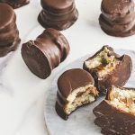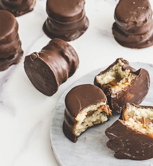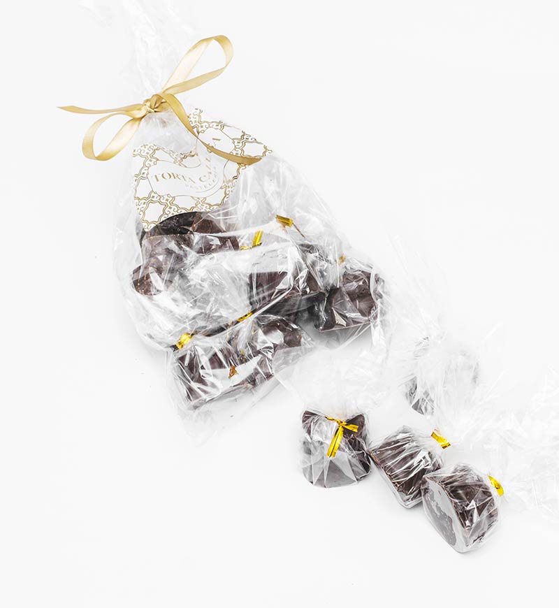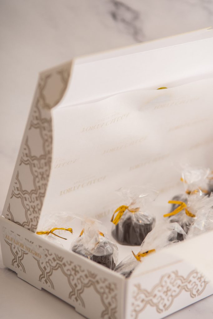 Mini alfajores de mazapán, rellenos de un delicioso manjar artesanal y bañados en chocolate semiamargo.