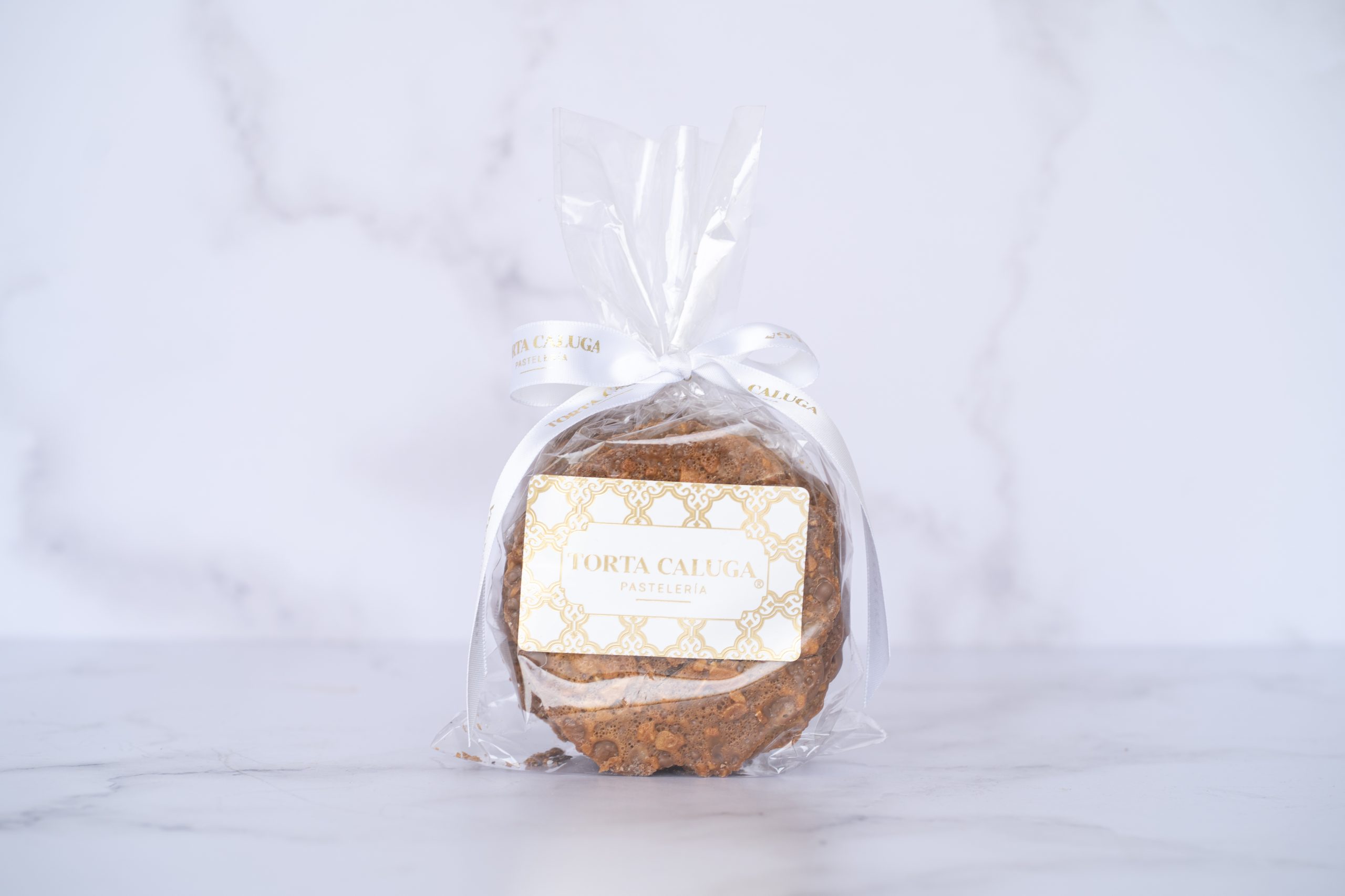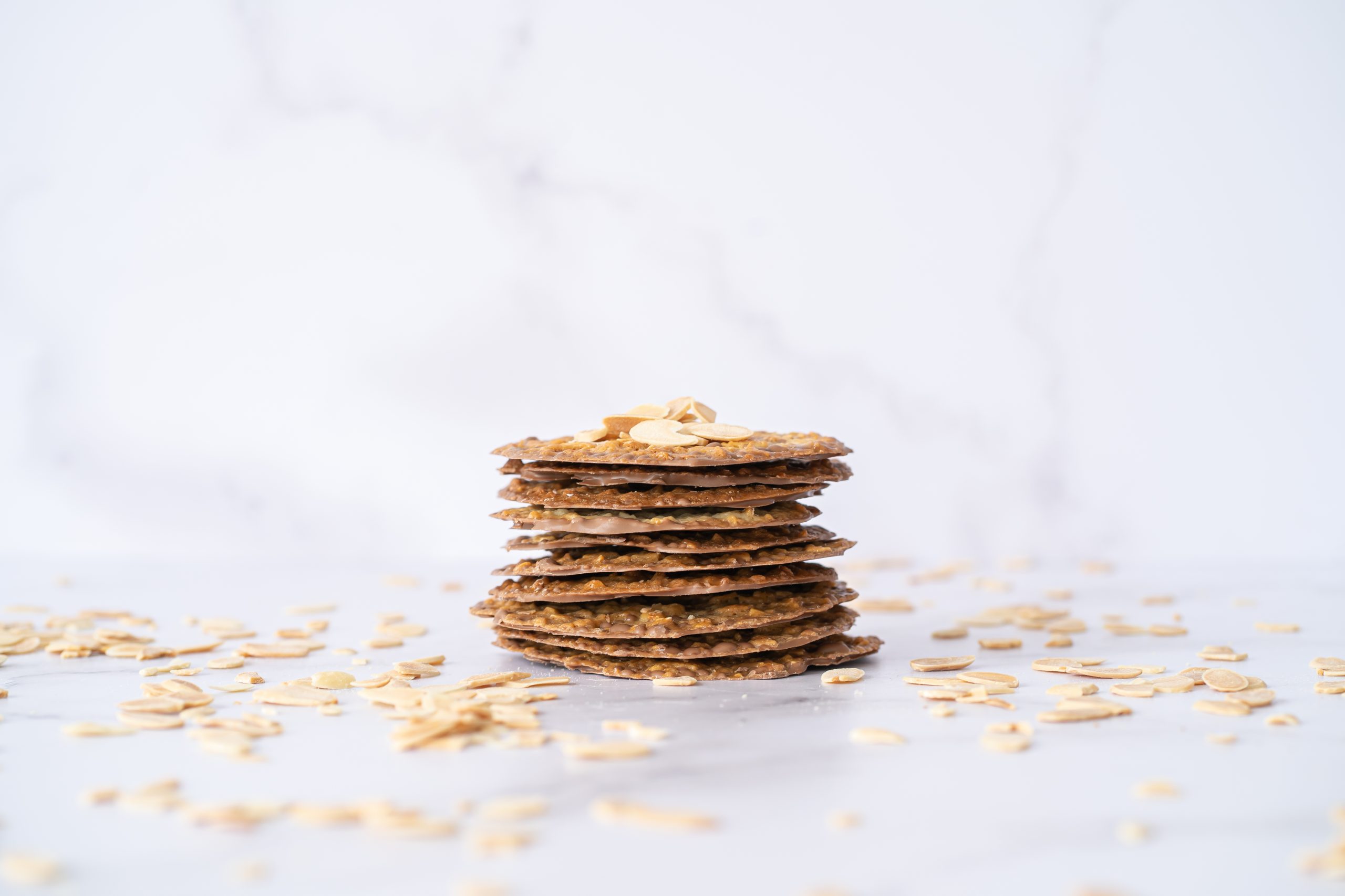Galletas crocantes de caramelo y láminas de almendra, bañadas con una fina capa de chocolate de leche, que las convierten en una combinación exquisita.