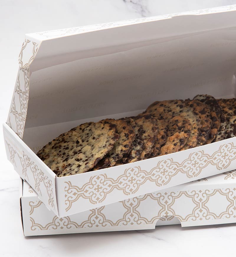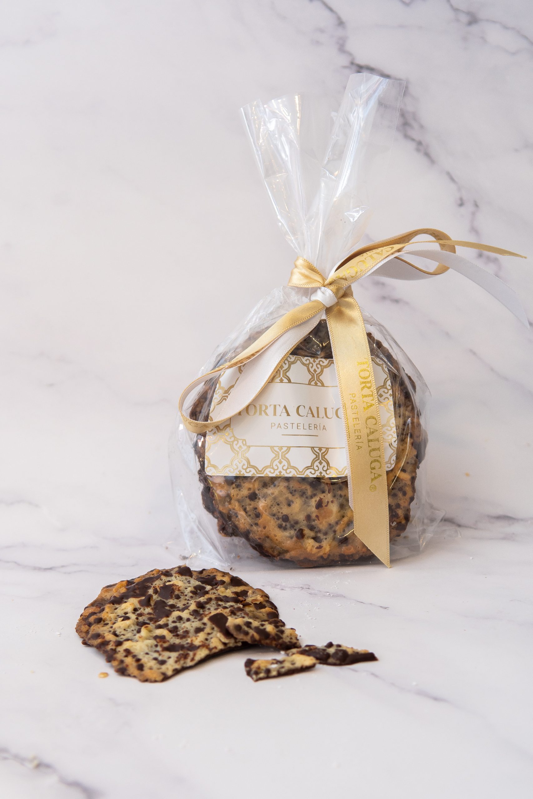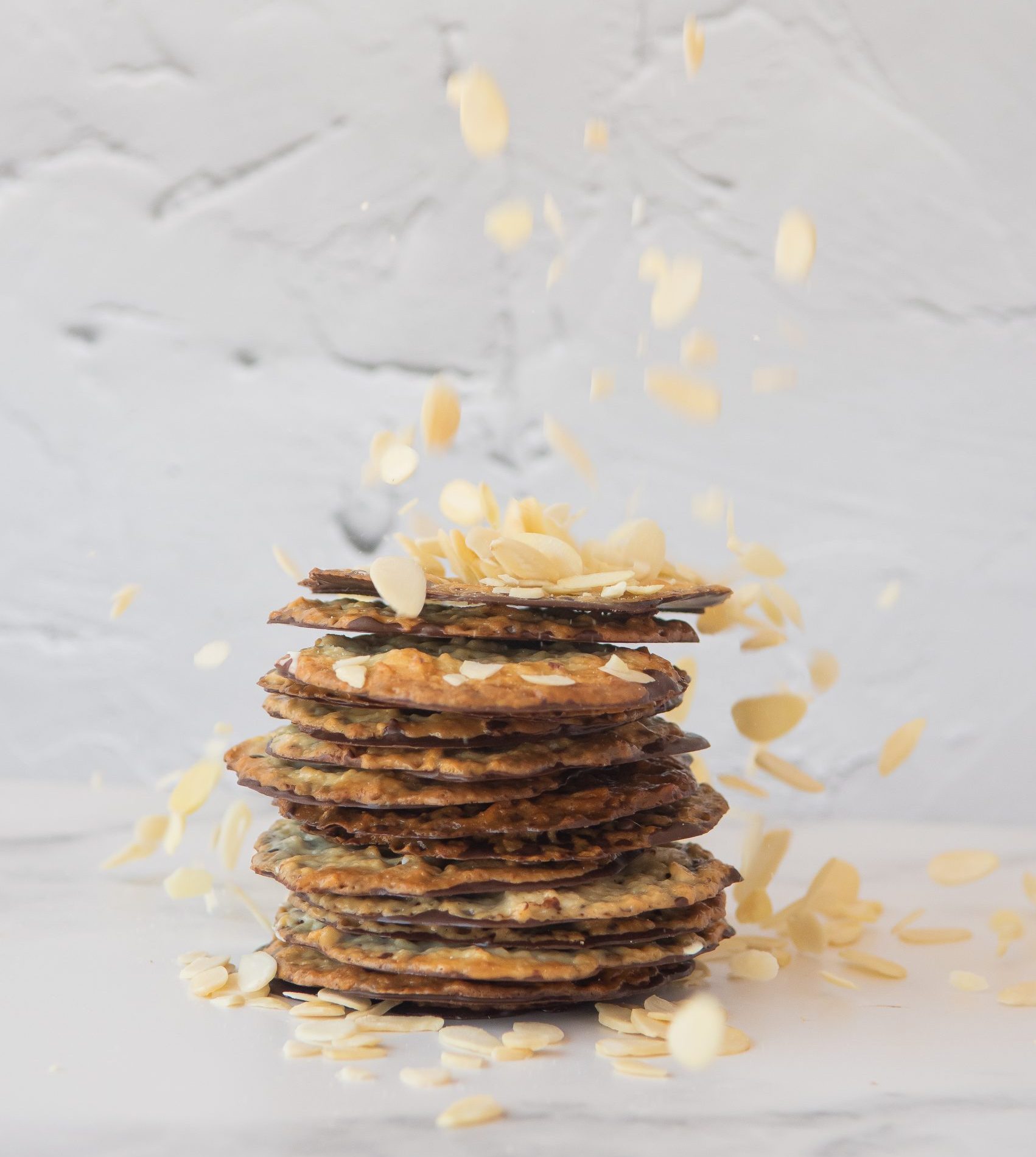 Galletas crocantes de caramelo y láminas de almendra, bañadas con una fina capa de chocolate semiamargo que las convierten en una combinación exquisita.