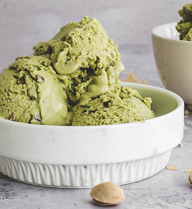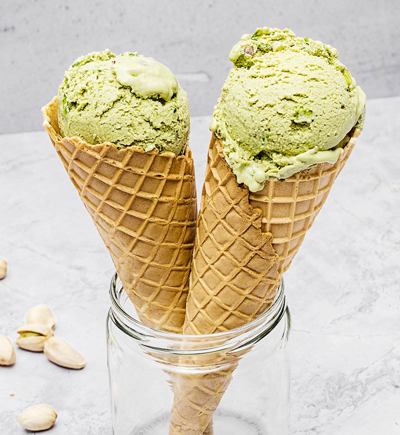 Helado de crema artesanal con pistachos naturales.