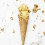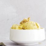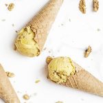 Helado de crema artesanal, lúcuma y trozos de nuez.